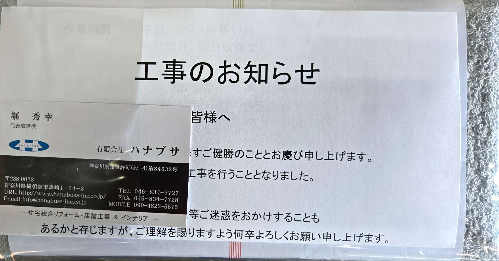 工事にあたり近隣さんへの工事のご挨拶に行って来ました!