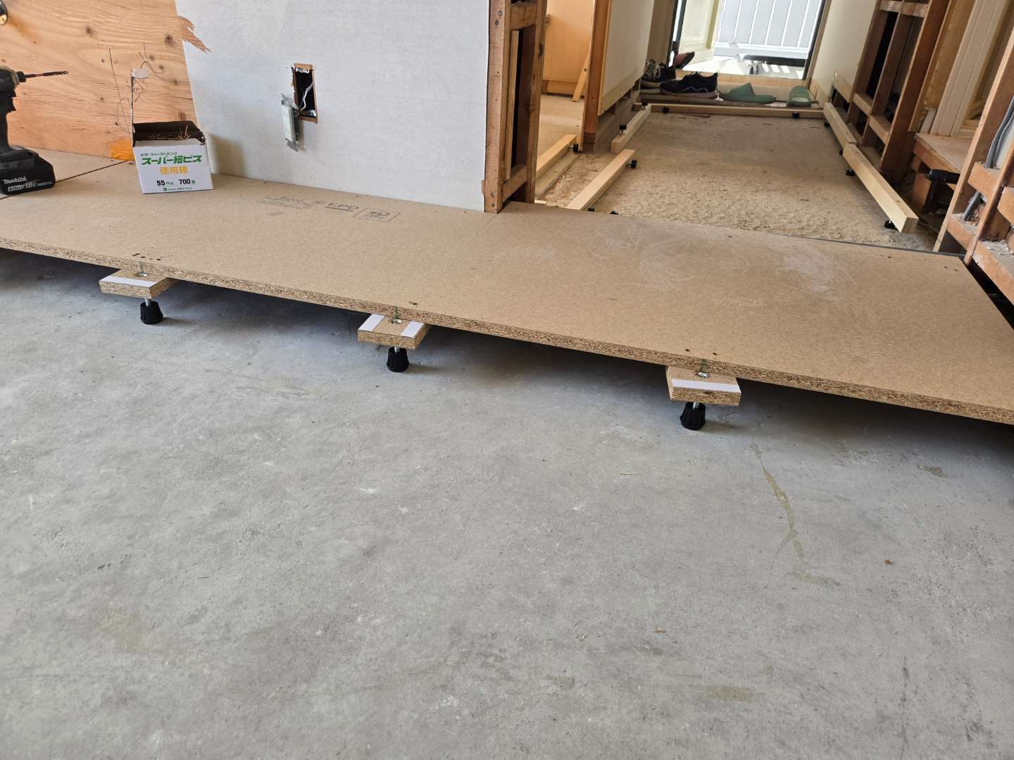 置床工事が終わり、べニアを捨て張りしてフローリングを張っていきます!