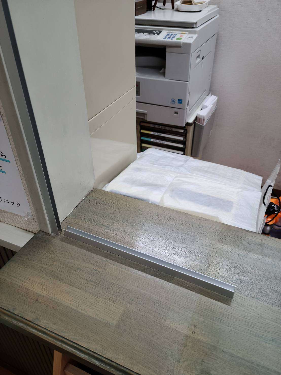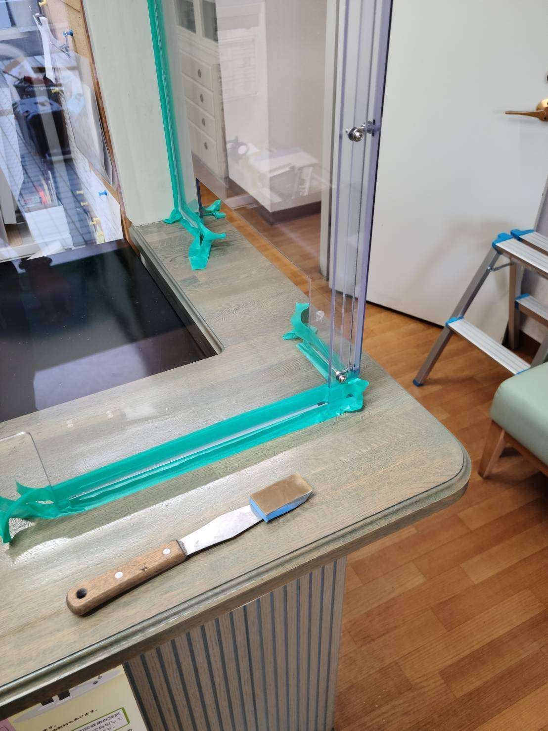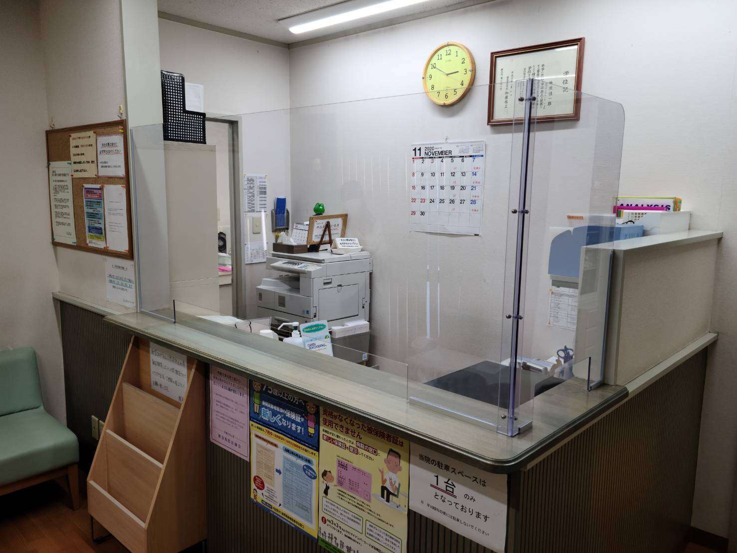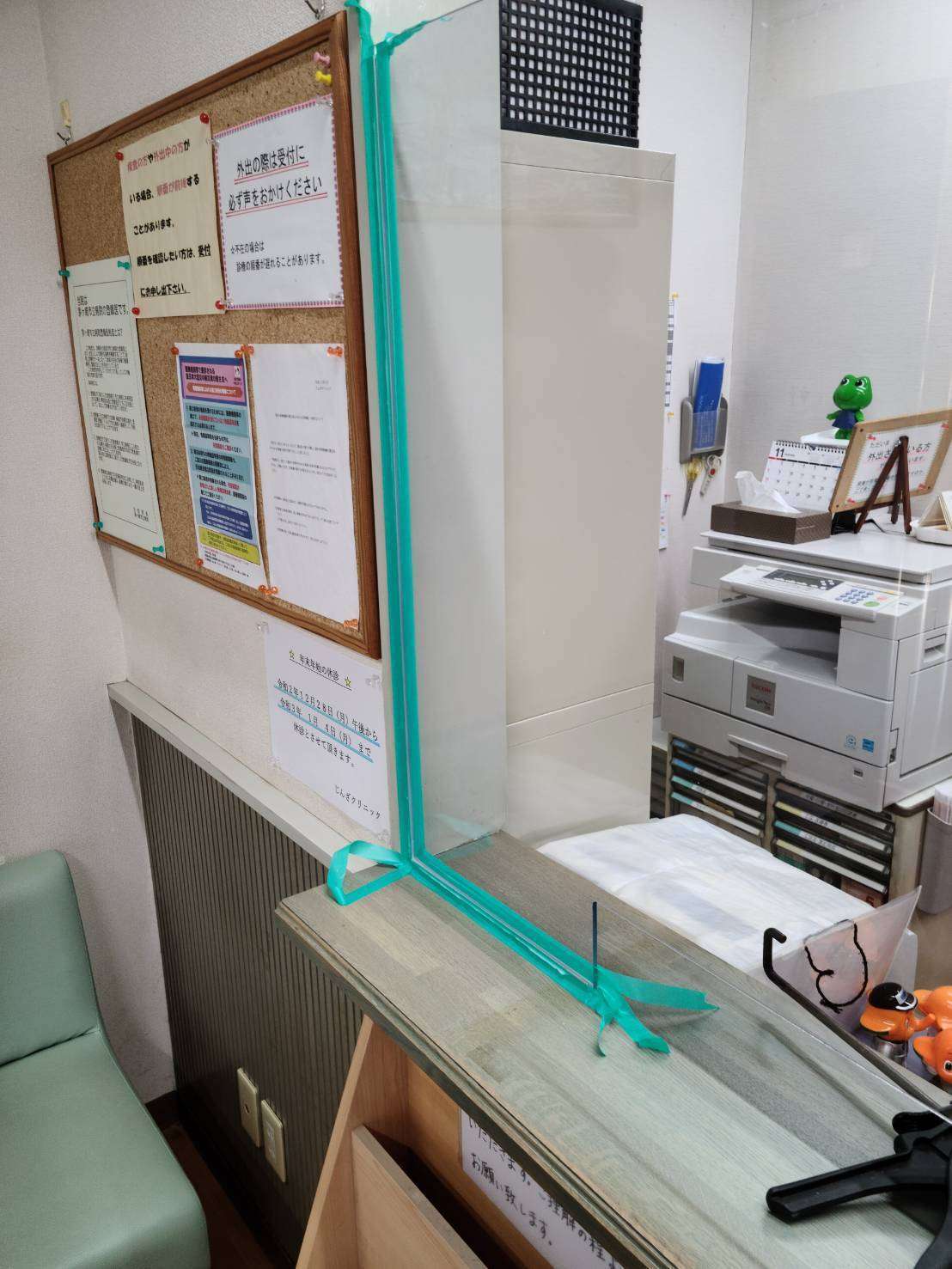クリニックの受付カウンターに、アクリル板のパーテーションを