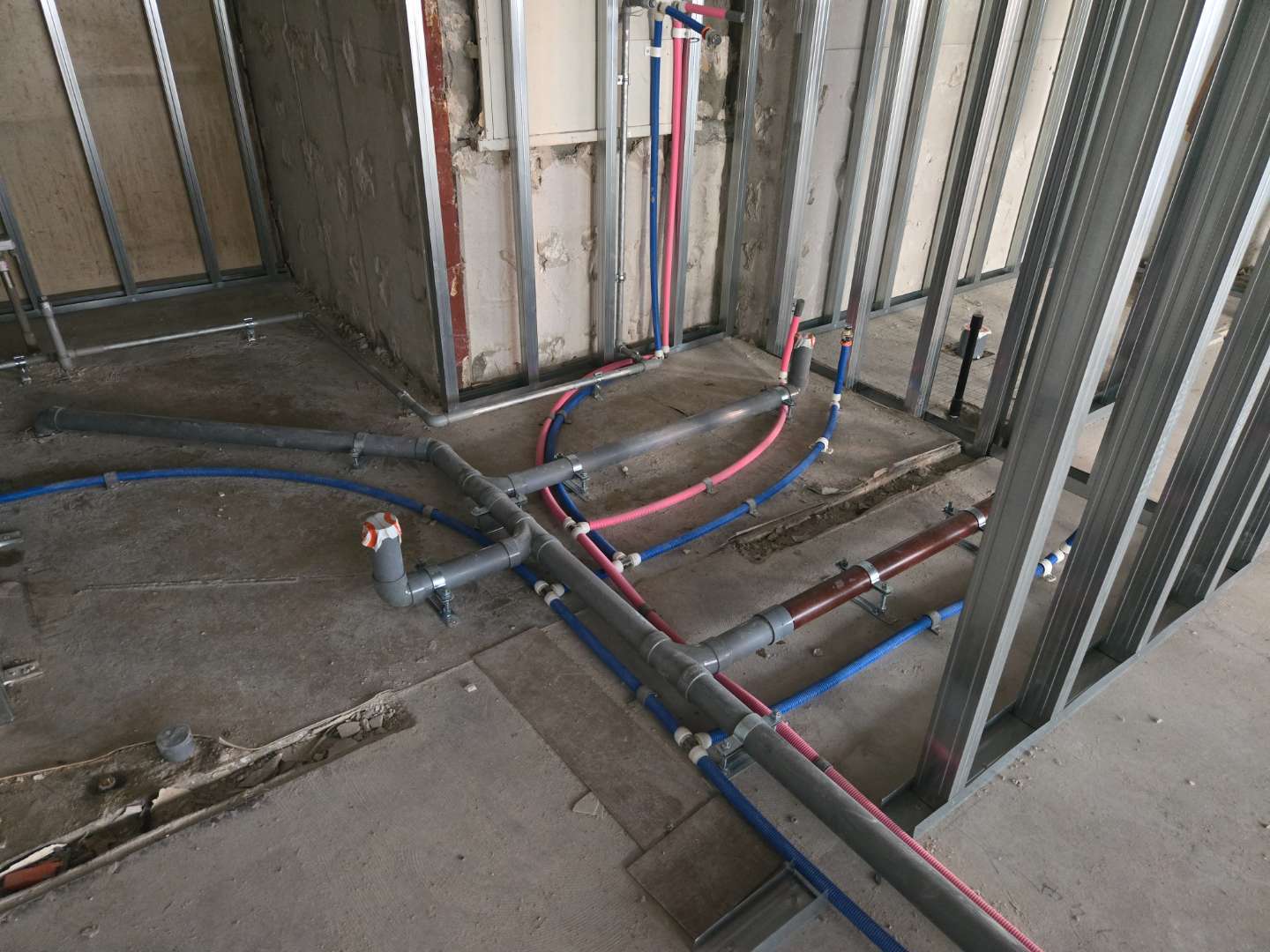 給排水切り回し工事をして軽天で下地工事