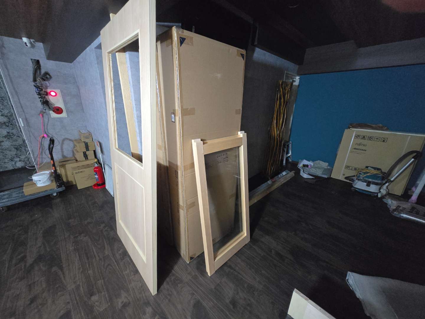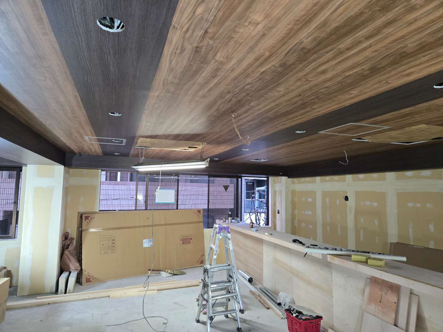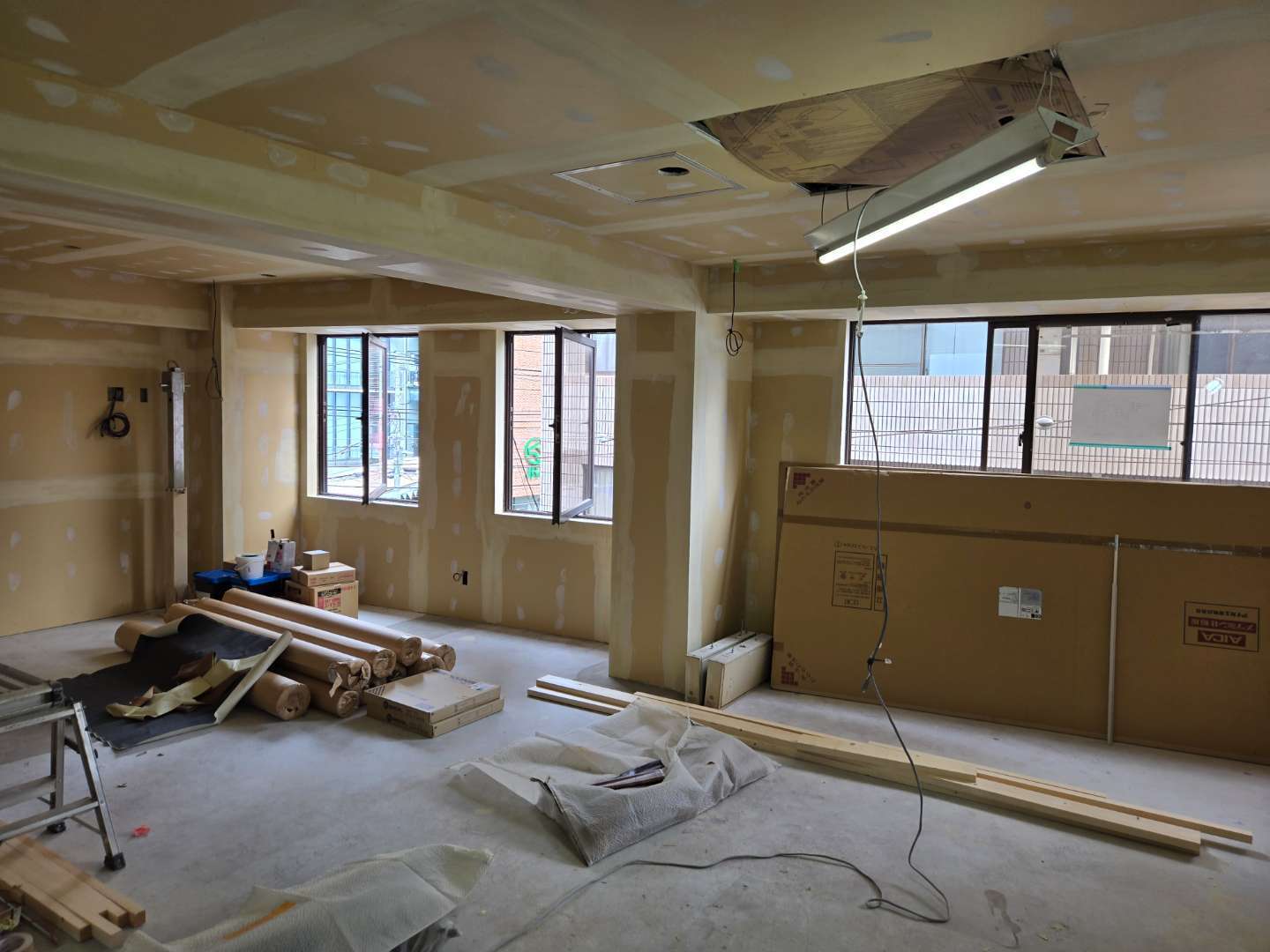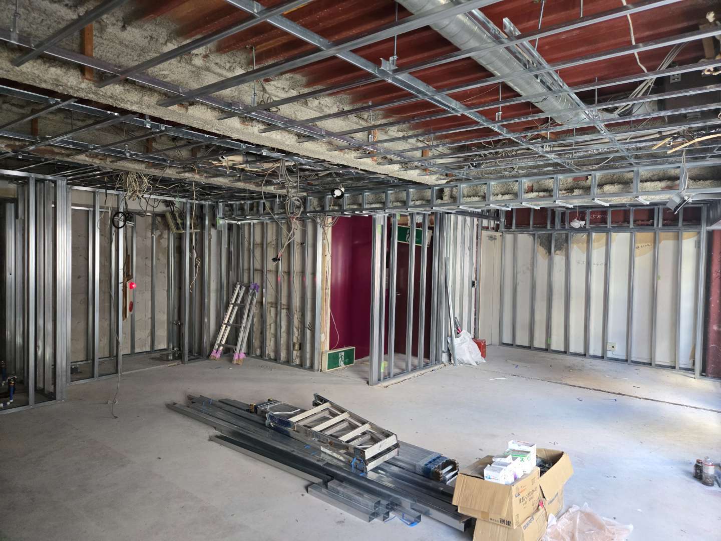 天井、壁、間仕切りを軽天で下地造り