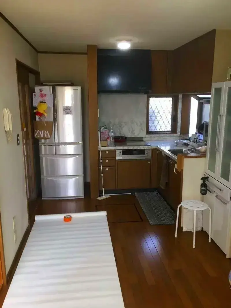 昔ながらの間取りで、キッチンと居間が完全に分かれており、動線が悪く会話も生まれにくいレイアウトでした。窓も小さく、日中でも照明が必要なほど暗い空間でした。